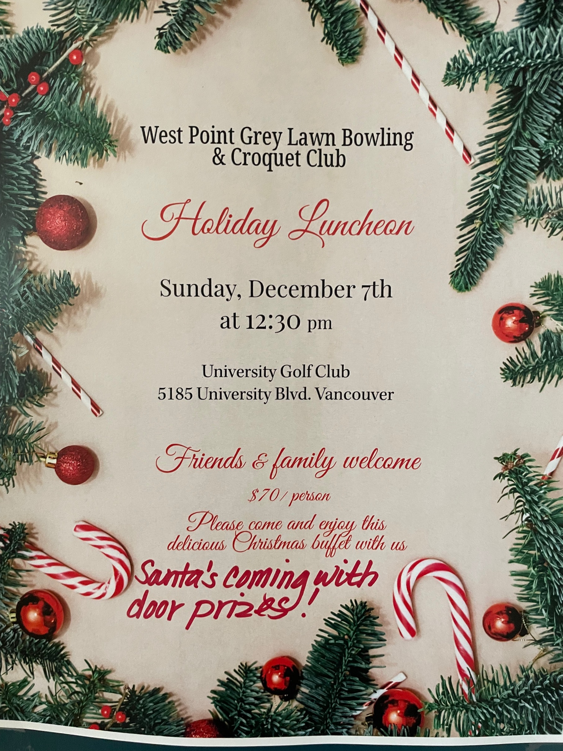 Sunday 7th December 12:30 Christmas Lunch at University Golf Club – Tickets available now!
